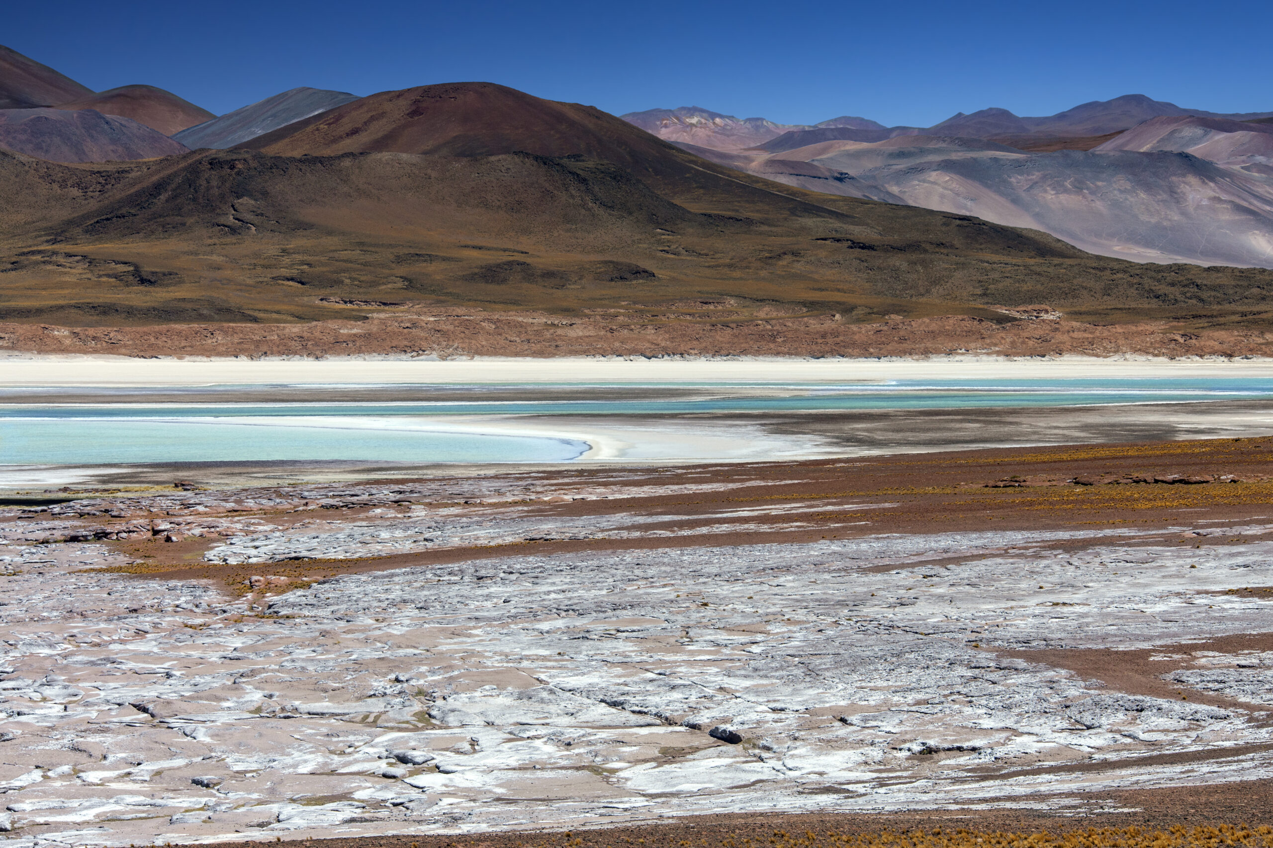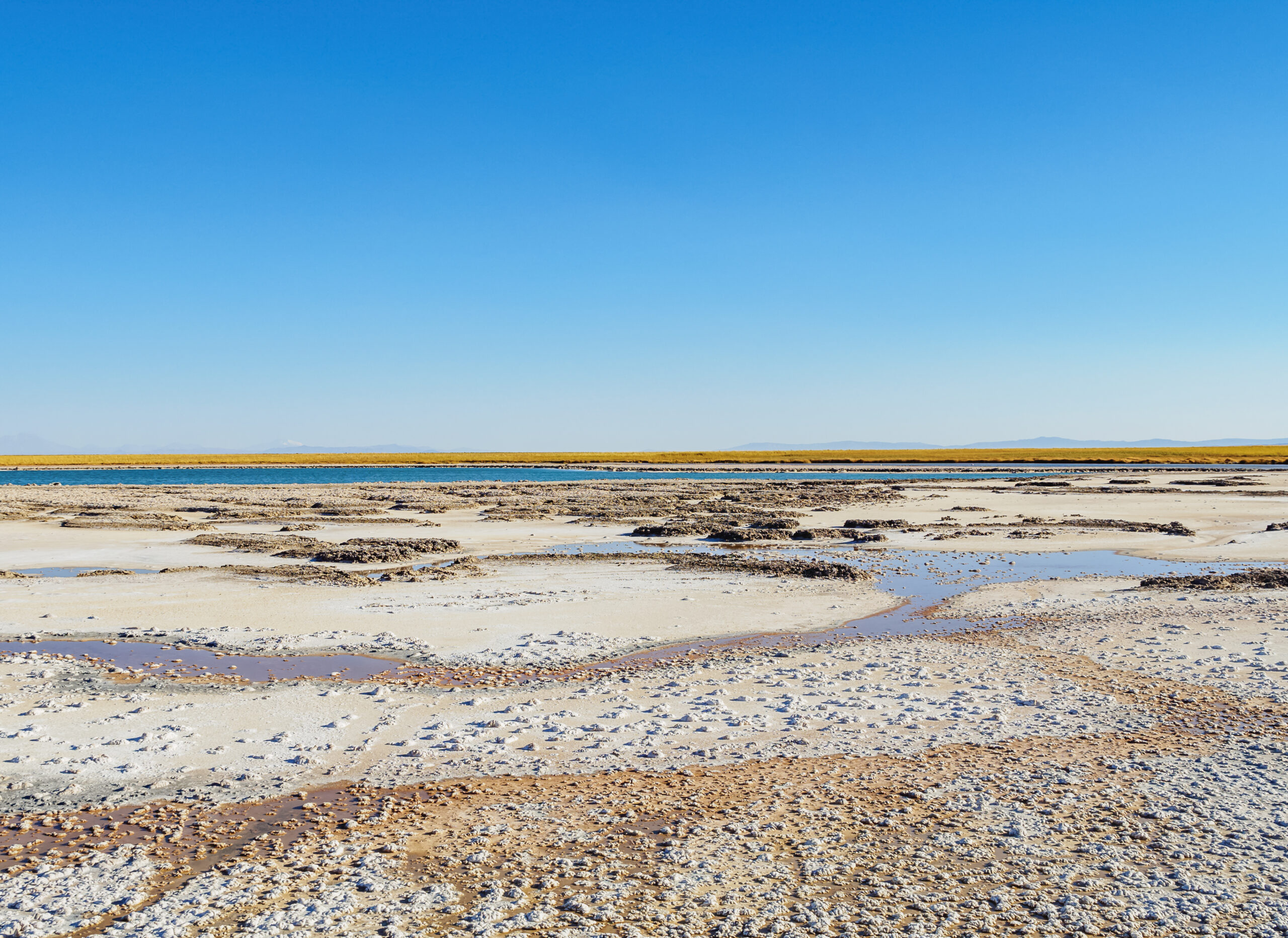 Výlet do pouštní oblasti Salar de Atacama k solnému jezeru Chaxa, kde lze pozorovat až 3 druhy plameňáků, zapadlé vesnice Toconao a Socaire s kostelíky s nabílenou zvonicí a oblast Lagunas Altiplanicas s jezery Miscanti a Miñiques s křišťálově čistou vodou v pozadí s vulkány, mj. Licancabur (5.916 m), večer návrat do San Pedro de Atacama.